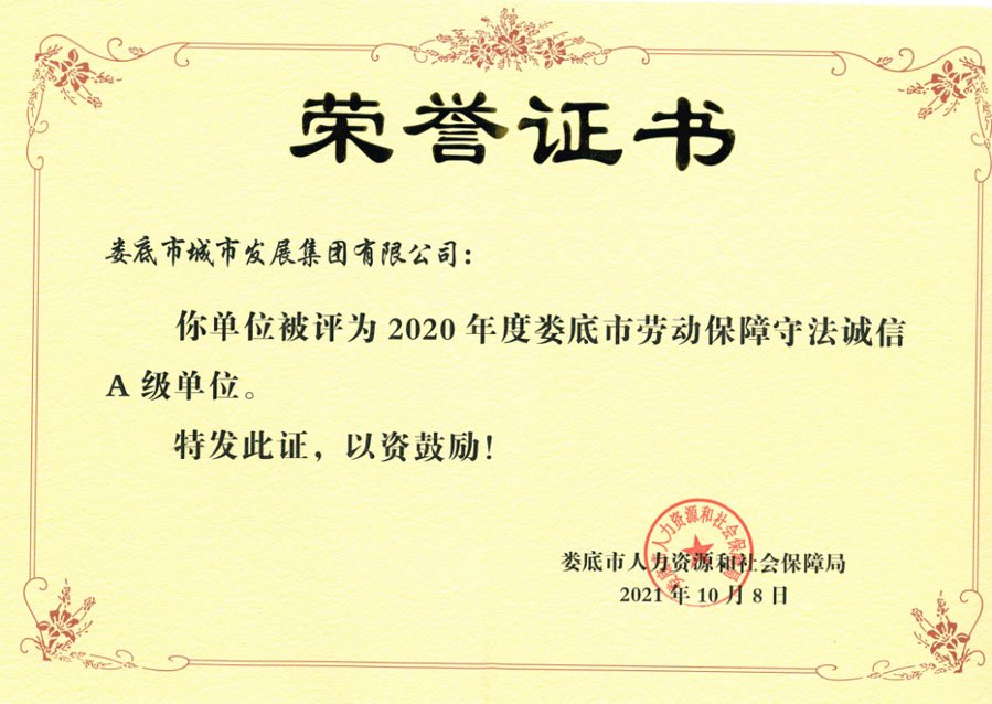 近日,婁底市人力資源和社會保障局公布了2020年度婁底市市本級用人單位勞動保障守法誠信等級評價結果,婁底市城市發(fā)展集團有限公司被評為“勞動保障守法誠信A級單位”。此次,婁底市千余家單位通過用人單位自主申報、市勞動監(jiān)察局初審、征求相關部門意見、市人社局審核、網上公示后共優(yōu)選出45家A級單位。這也是市城發(fā)集團連續(xù)第四年獲評此榮譽。